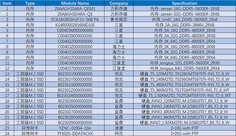 软硬件支持列表