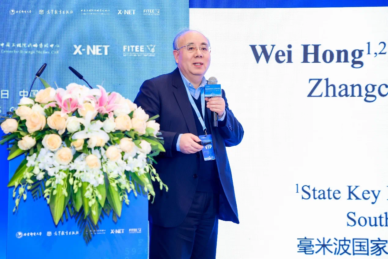 洪伟教授在讨论中介绍东南大学毫米波国家重点实验室(SKLMMW)和合作企业在非对称毫米波(mmWave)和太赫兹全数字大规模MIMO阵列架构方面的研究进展,包括集成电路(芯片)设计、系统开发和试验测试验证。